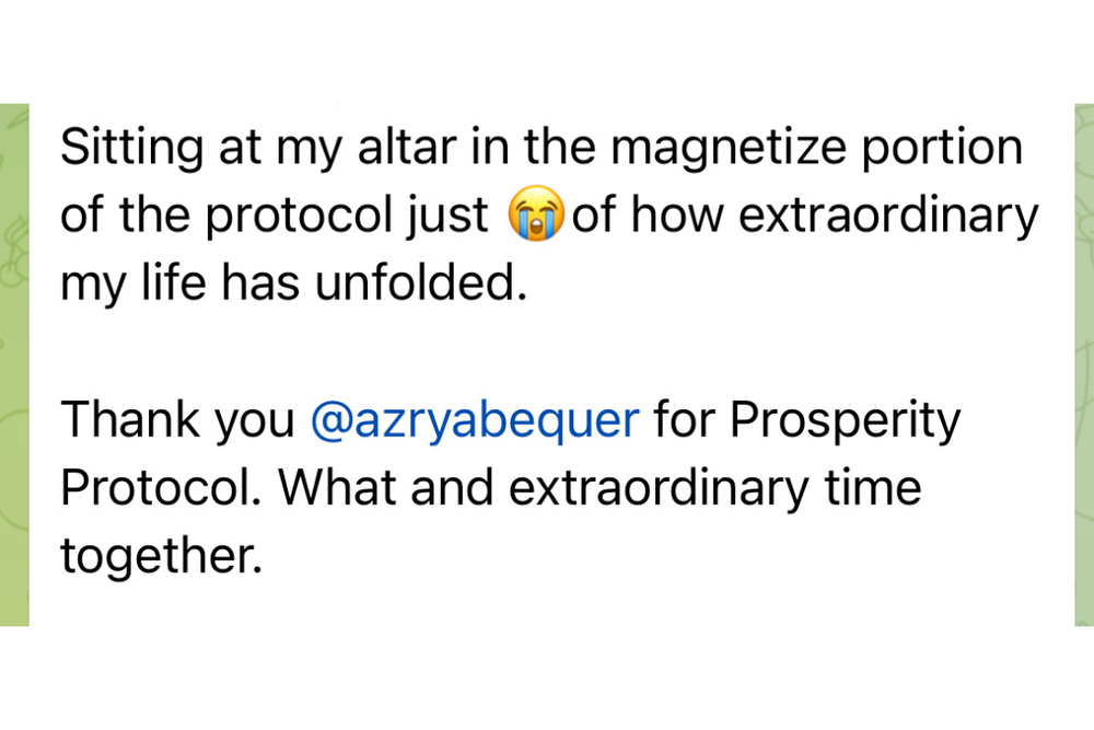 Azrya delivers two pre-recorded 2-hour masterclasses where she walks you through the complete 5-Phase Prosperity Protocol and shares the exact identity recalibration process she's used to magnetize $3M+ in aligned capital.
