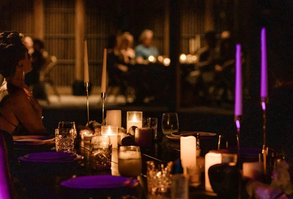 shared, candlelit tables under open, starlit skies,